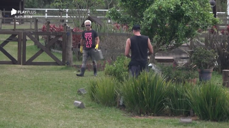 Viny e Guilherme cuidaram do jardim da sede, na manhã desta terça-feira (29). Bem-humorados, os peões fizeram uma paródia do hit dos Titãs, Flores . Veja!