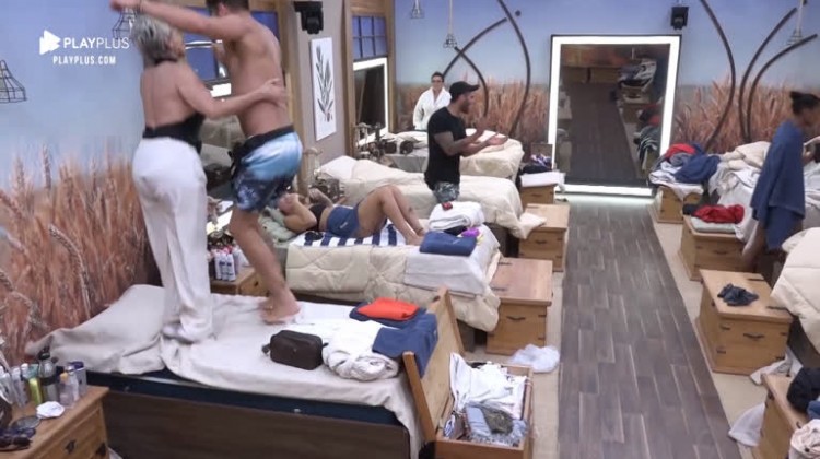 O episódio da discussão entre Lucas Viana e Andréa Nóbrega ainda deu o que falar, neste domingo (27). Porém, a história foi retratada através de uma brincadeira entre Guilherme e a própria Andréa. Os dois pularam na cama da peoa e arrancaram risos de quem estava no quarto.