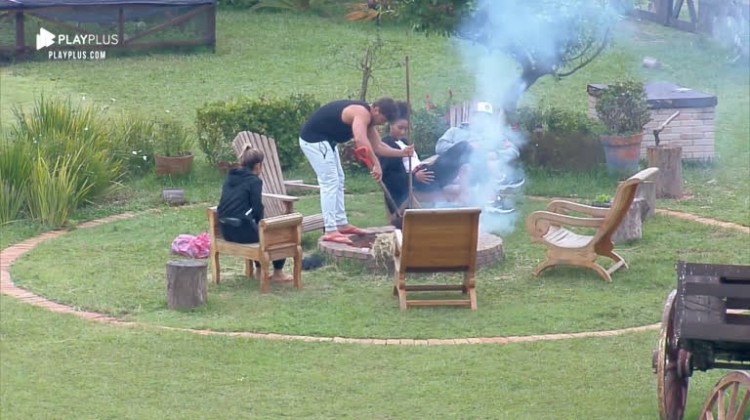 Lucas, Hariany, Sabrina, Rodrigo e Thayse decidiram fazer uma fogueira na área externa da sede. Os peões ocuparam os bancos ao redor do fogo para se esquentar. Quer saber o que acontece o tempo todo em A Fazenda? Acesse PlayPlus e acompanhe tudo 24 horas ou assista à íntegra dos programas.