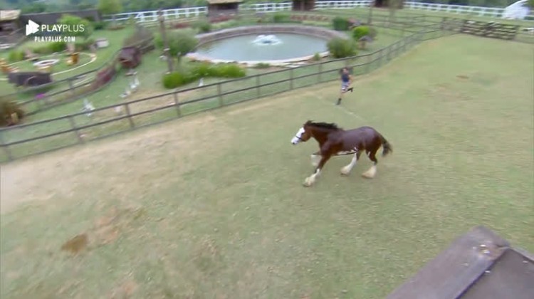 Após um banho resferescante de mangueira , hora de secar! Lucas correu pelo cercado fazendo com que Lyon mostrasse todo o seu porte. Em alguns momentos, o cavalo deu alguns pinotes, chamando a atenção dos peões. Andréa Nóbrega, que assistiu tudo de longe, elogiou a beleza do mamífero.