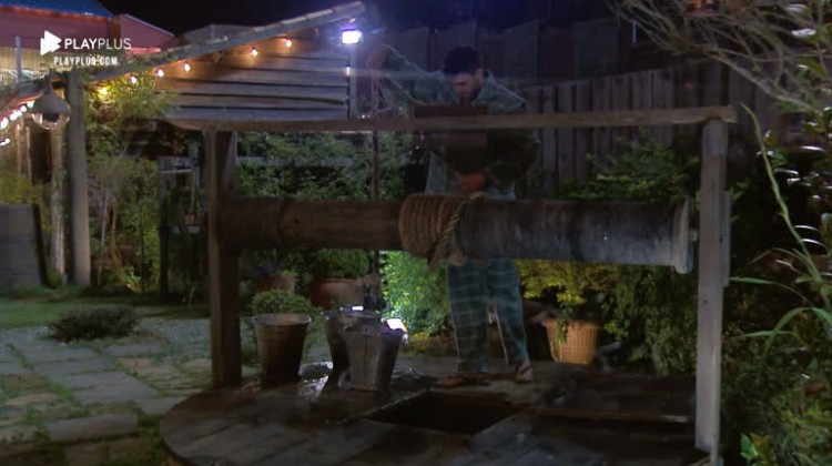 Na baia, Netto pega água do poço para tomar banho