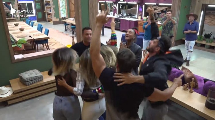 Na volta de Thayse Teixeira para a sede, os peões a receberam com alegria e fizeram uma homenagem para Túlio Maravilha. Assista ao momento!