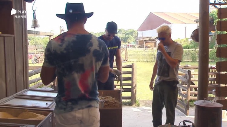 Viny mostrou que não tem frescura para realizar as tarefas matinais com os animais e explicou para Lucas e Guilherme que mexe no feno sem luva mesmo