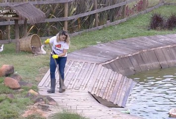 Na manhã desta terça-feira (22), Diego Grossi ajudou Thayse Teixeira na limpeza do lago dos gansos...