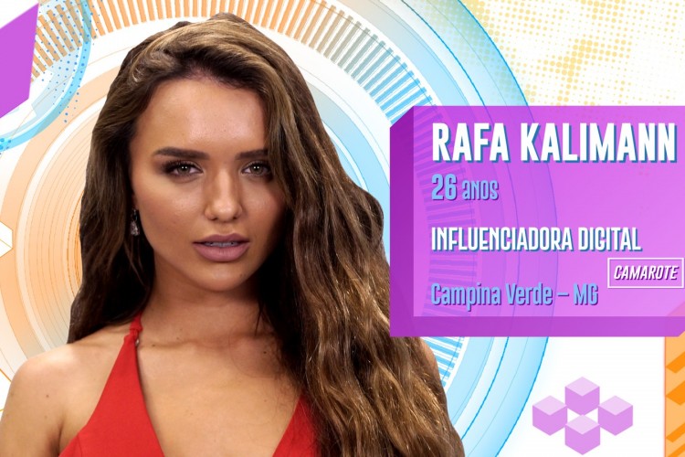 Influenciadora digital, 26 anos e natural de Campina Verde, em Minas Gerais. A participante Rafa Kalimann é seguida por uma multidão de pessoas em suas redes sociais. São 3 milhões de seguidores, mas a sister garante que a falta do celular não será um problema. Ela faz parte do grupo Camarote no BBB20.