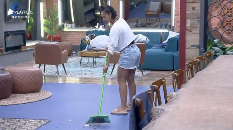 Aline varre a sede e fica surpresa com a quantidade de sujeira – A Fazenda 13